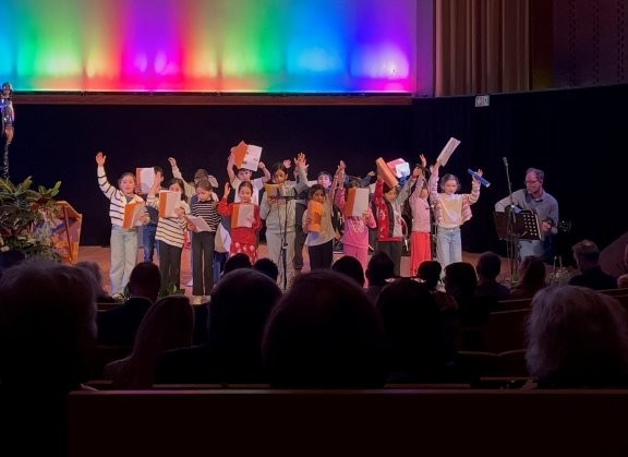 Wir haben 2 Lieder vorgetragen und ein kleines Geschenk überreicht.