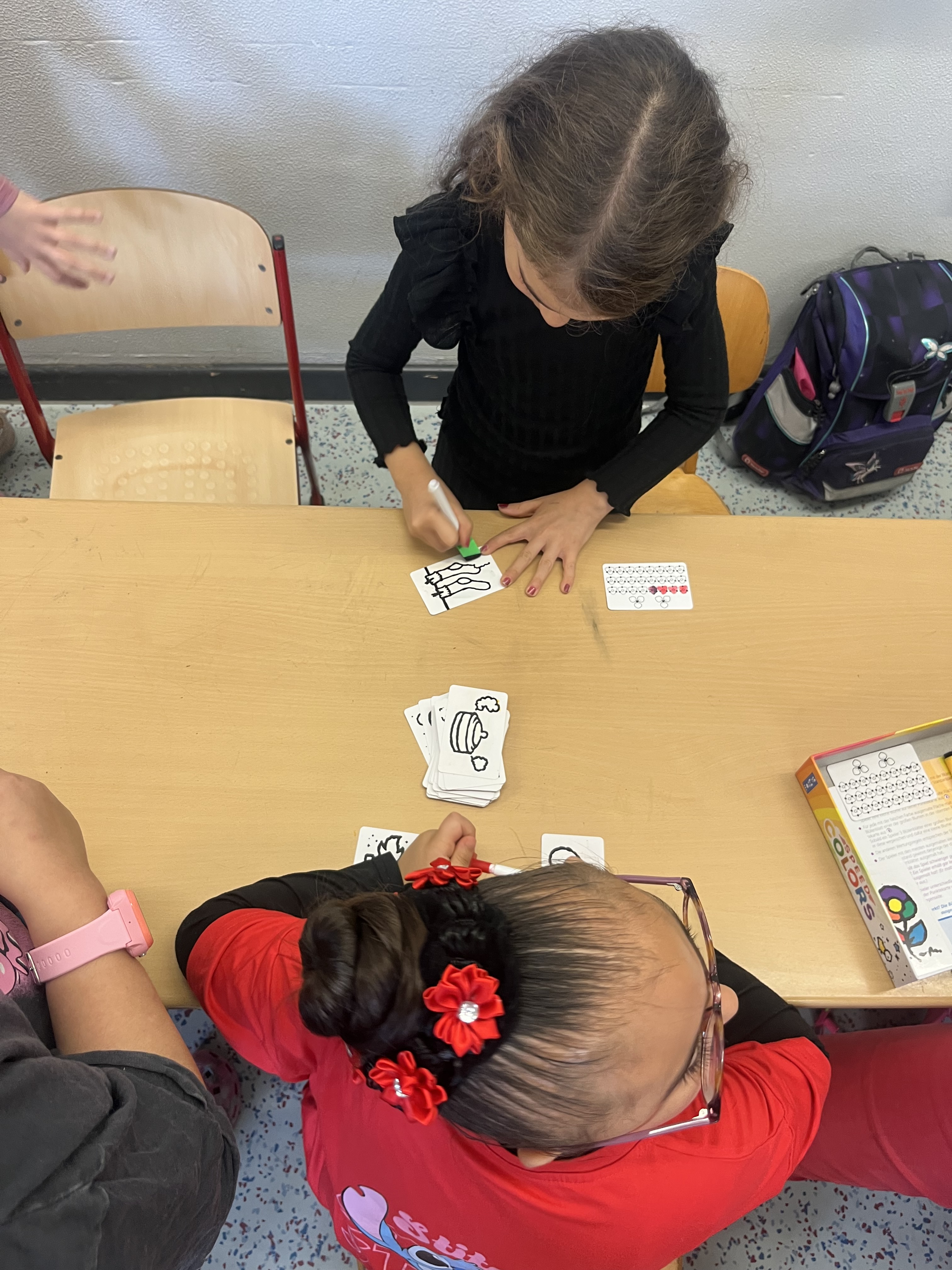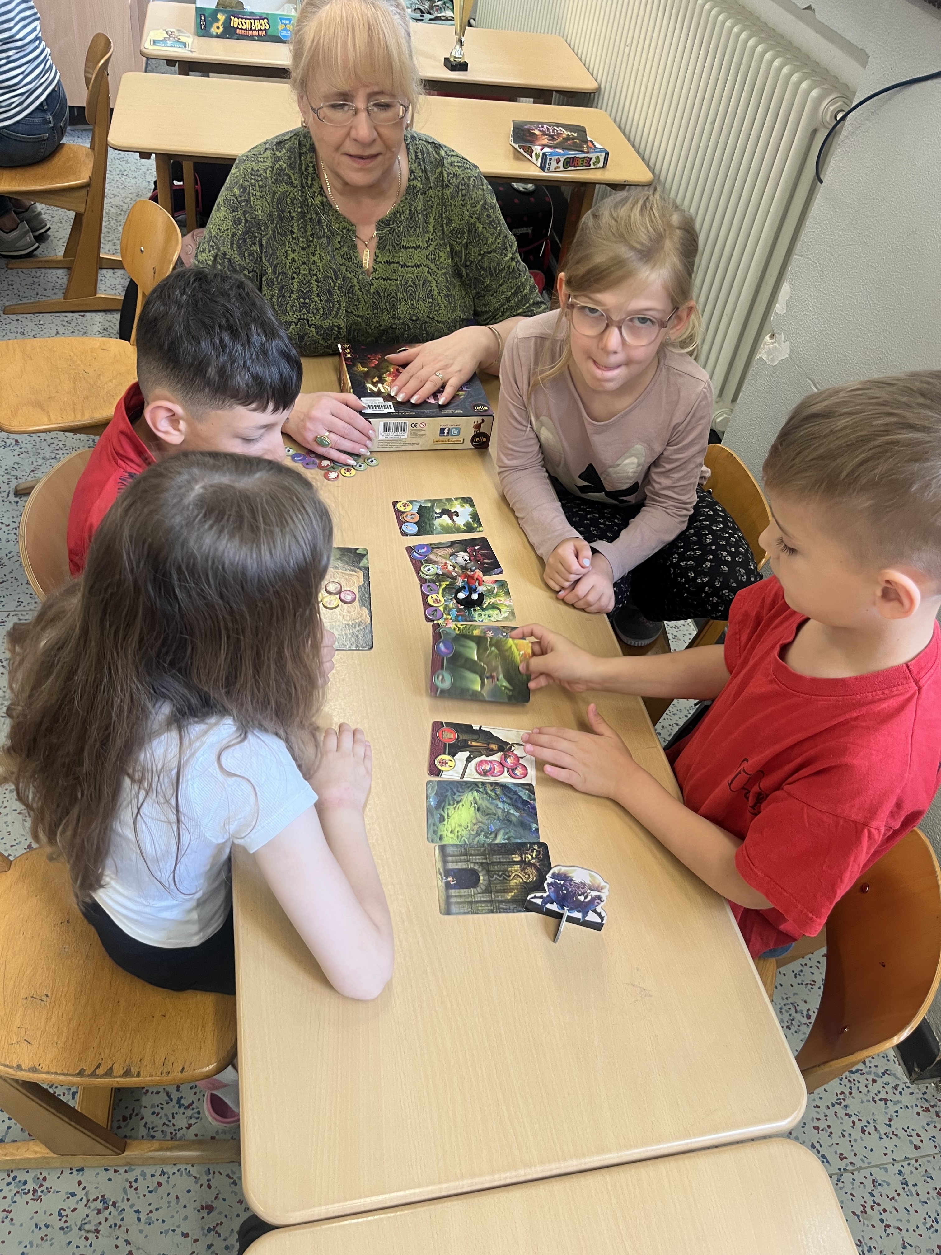 Großes Staunen wird im Klassenraum der Klassen 1a und 1b hörbar, als die Kinder die vielen tollen Gesellschaftsspiele sehen. Am Montag, den 07.07.25 besuchten einige Mitarbeiter*innen der Spieliothek in Marl die beiden ersten Klassen um sich und das Angebot der Spieliothek vorzustellen. Gemeinsam mit kleinen Gruppen spielten die Mitarbeiter*innen unterschiedliche Spiele, die den Kindern große Freude bereiteten. Kostenlos können diese in der Spieliothek von Groß und Klein ausgeliehen werden um auch Zuhause Spielfreude mit der ganzen Familie zu haben.