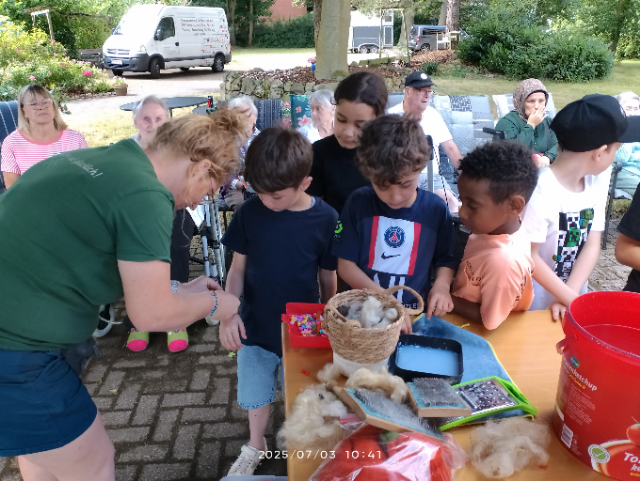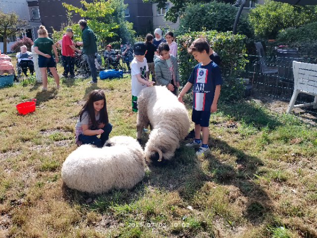 Während eines Besuches vom Bauernhof hatten sowohl die BewohnerInnen des Julie – Kolb – Hauses als auch die SchülerInnen der Pestalozzischule tierischen Spaß! Denn an diesem Vormittag drehte sich beim Generationenprojekt alles um das Thema Schafe!