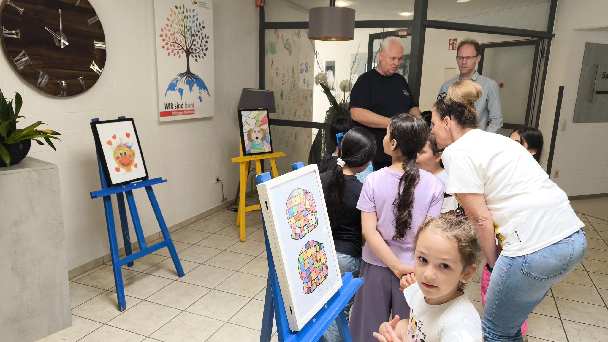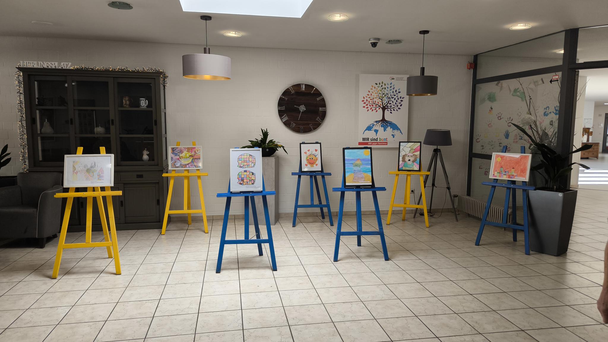 Was für eine wundervolle Aktion. In den kommenden Monaten werden die Bilder ausgetauscht, so dass immer wieder neue Kunstwerke der Pestalozzikinder zu bestaunen sein werden.
