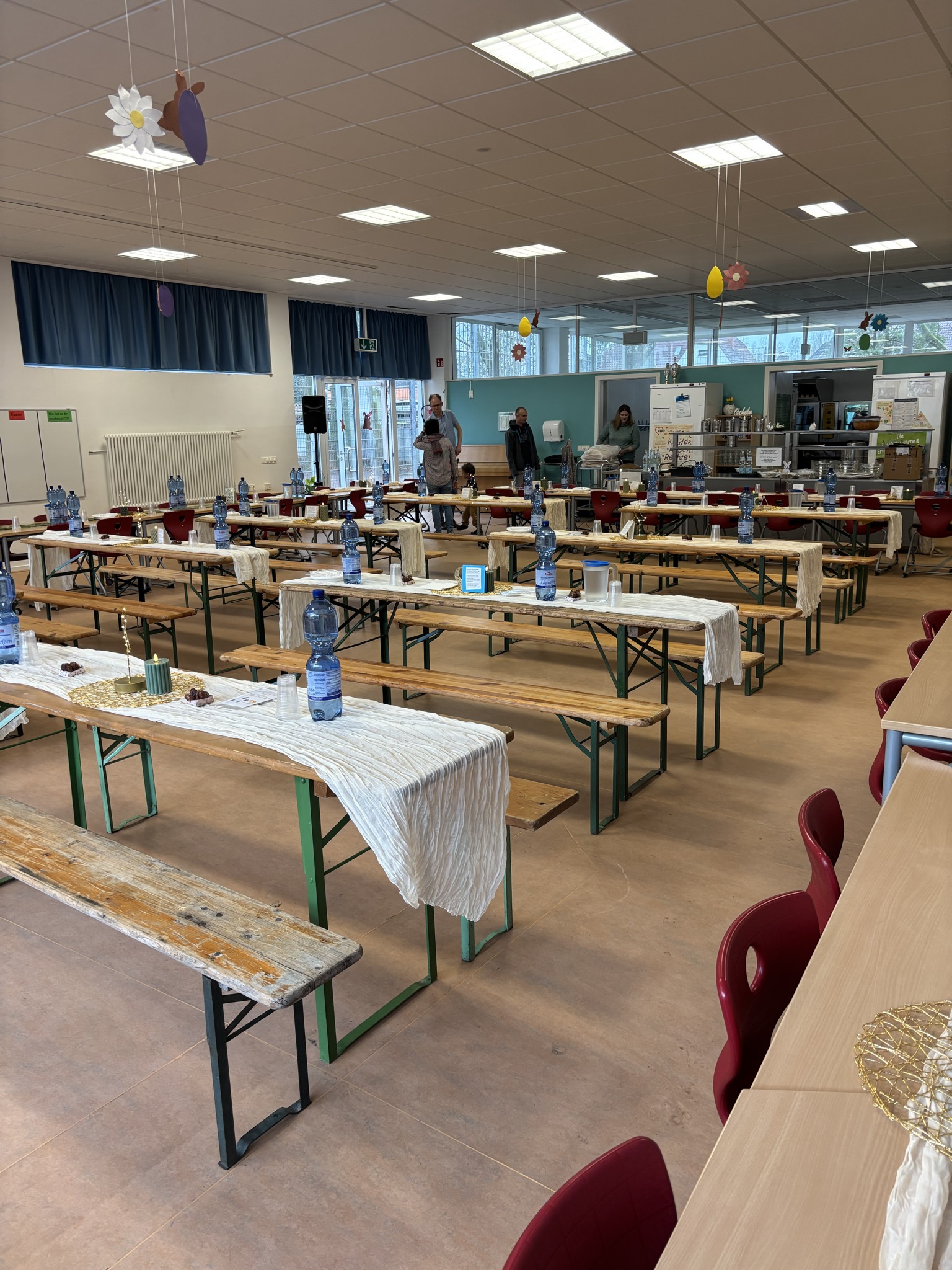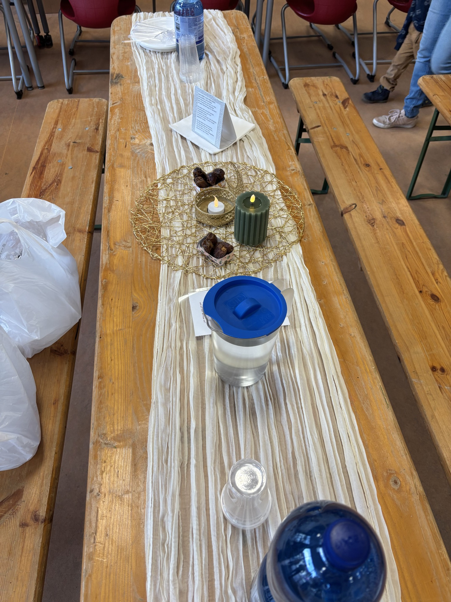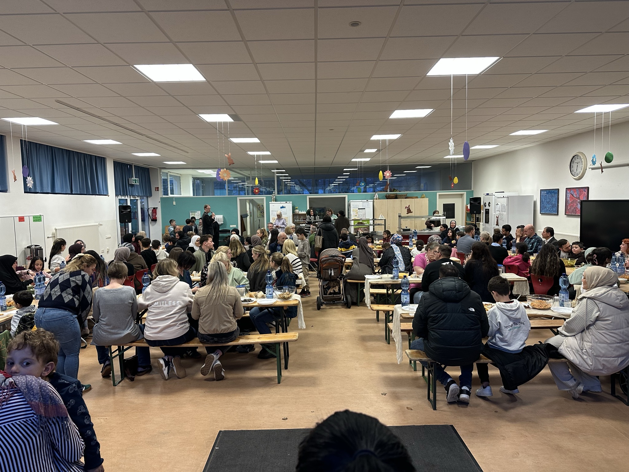 Am Dienstag, 10.3.2026 fand bei uns in der Mensa der Pestsalozzischule ein Iftar-Mahl statt. Iftar ist das Fasten brechen im Ramadan. Der Ramadan ist der heilige Monat der Muslime und da viele Kinder an unserer Schule muslimischen Glaubens sind, haben wir dem Wunsch der Eltern aus unserem Elterncafé entsprochen und ein Iftar-Mahl veranstaltet.