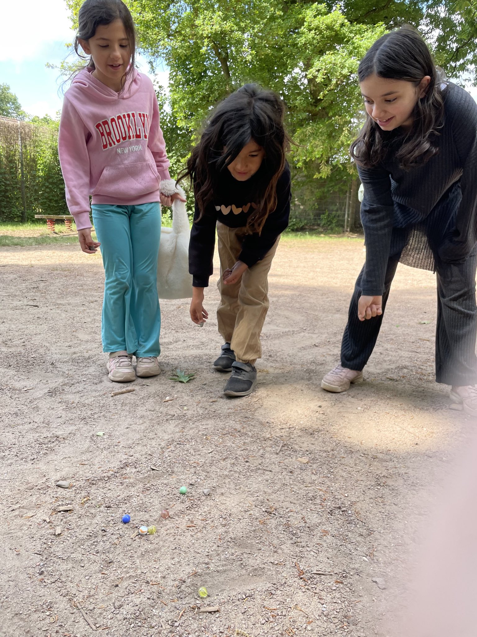 Viel Freude hatten wir dabei, Kinderspiele kennenzulernen und selbst zu spielen. Hierzu zählt zum Beispiel Nigoli, ein Kreisspiel mit Murmeln.