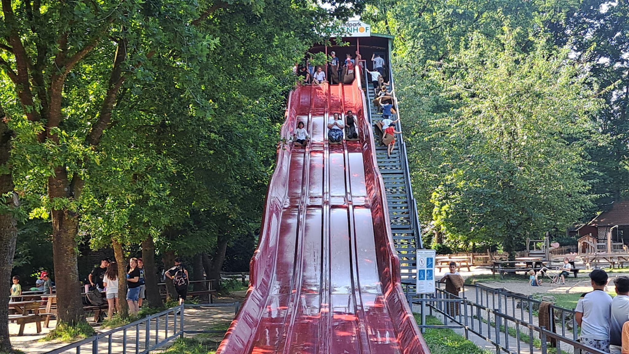 Ein großes Highlight war der Drachenturm – ein riesiger Turm mit 7 verschiedenen Rutschen auf verschiedenen Levels. Auch Frau Rittmann und Frau Bunge trauten sich mit einem Teppich unter dem Arm auf die Rutsche – allerdings nur auf Level 4. Viele Kinder waren sehr mutig und schafften die Rutsche „Freier Fall“ auf Level 7.