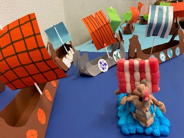 Die Wikinger waren zu ihrer Zeit die besten Bootsbauer und Seefahrer Europas, weshalb sie besonders seetüchtige und schnelle Schiffe hatten. Die Drachenboote wurden für Raubzüge und Entdeckungsfahrten genutzt. Die Handelsschiffe der Wikinger hießen Knorren und waren geeignet, um schwere Ladungen zu transportieren. Die Kinder bastelten viele bunte Drachenboote nach, sodass eine große Flotte entstand.