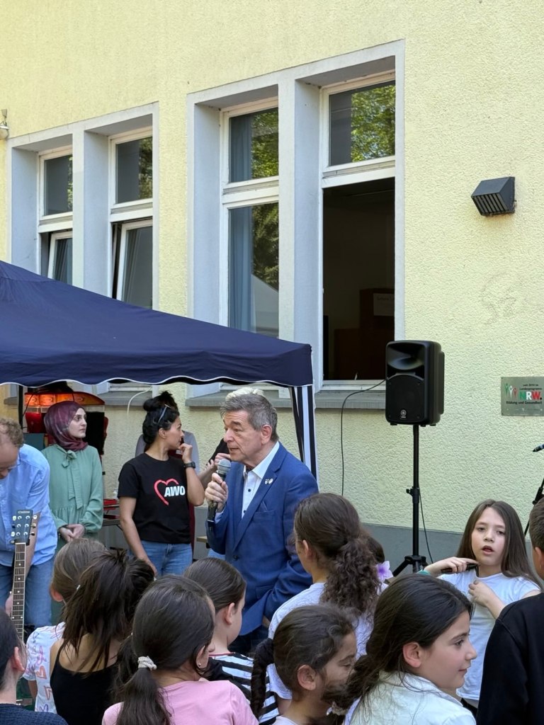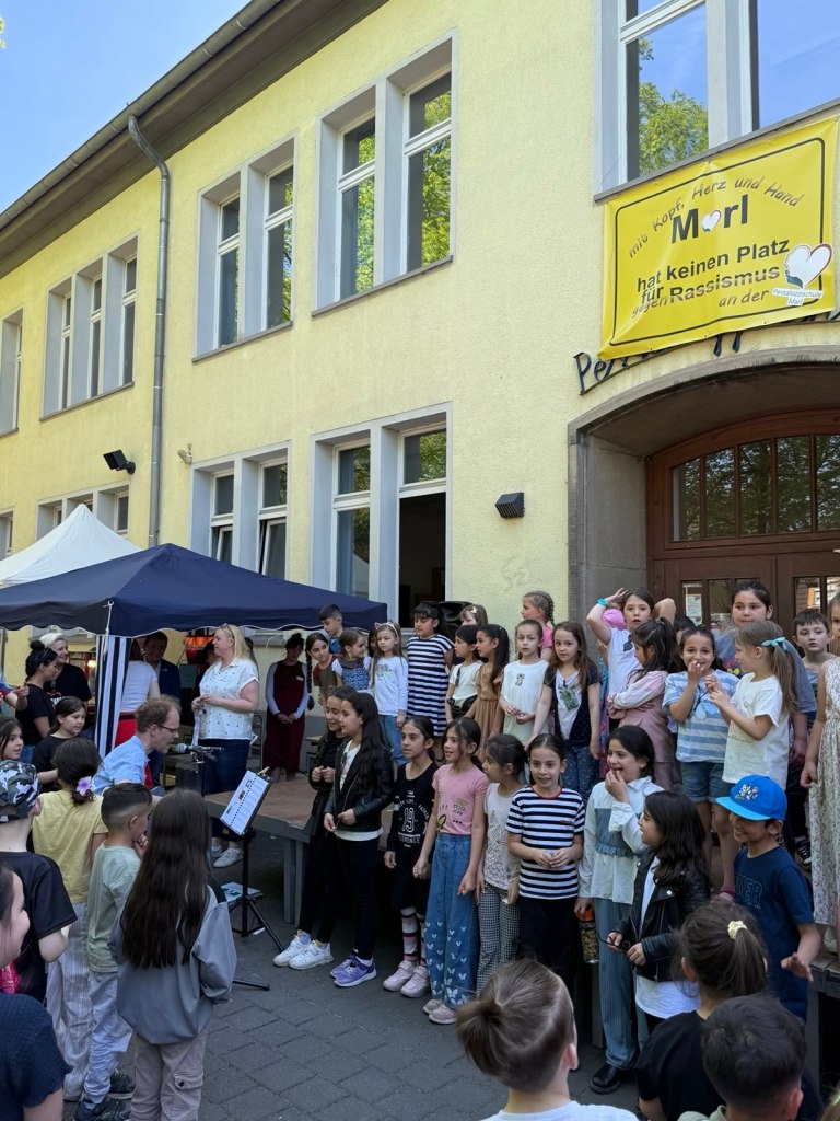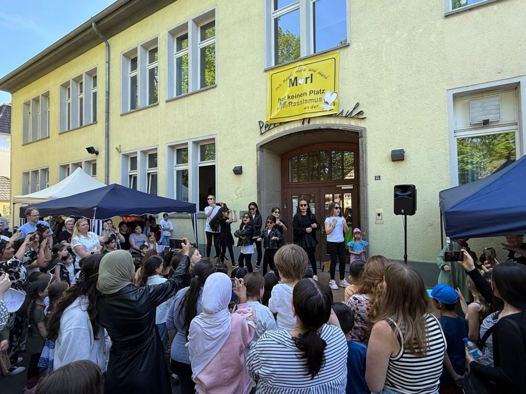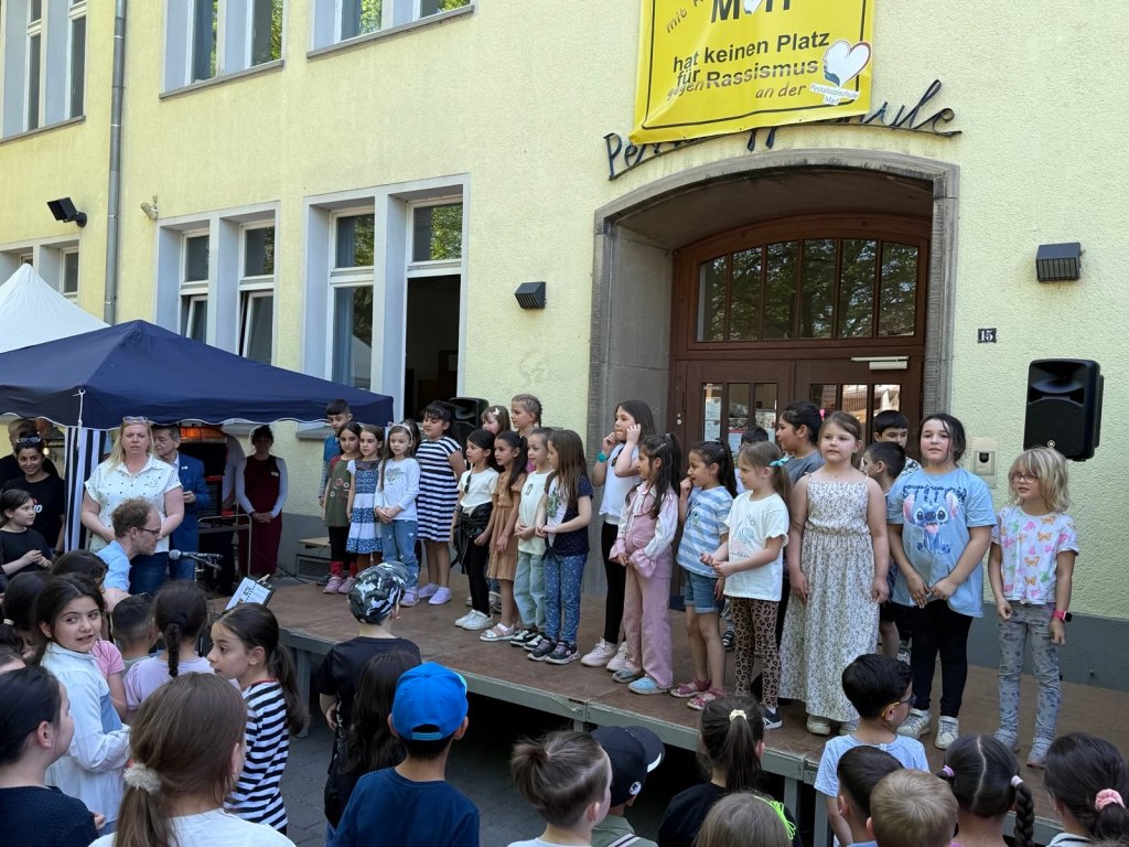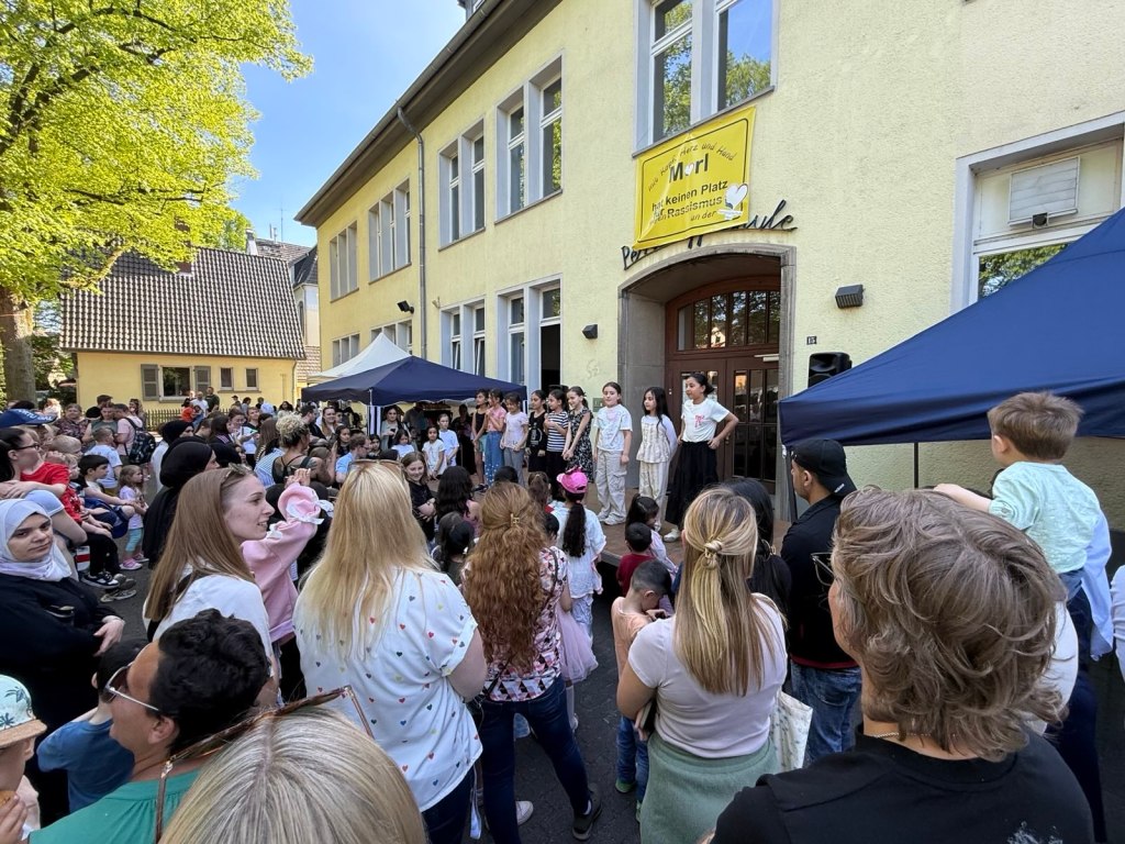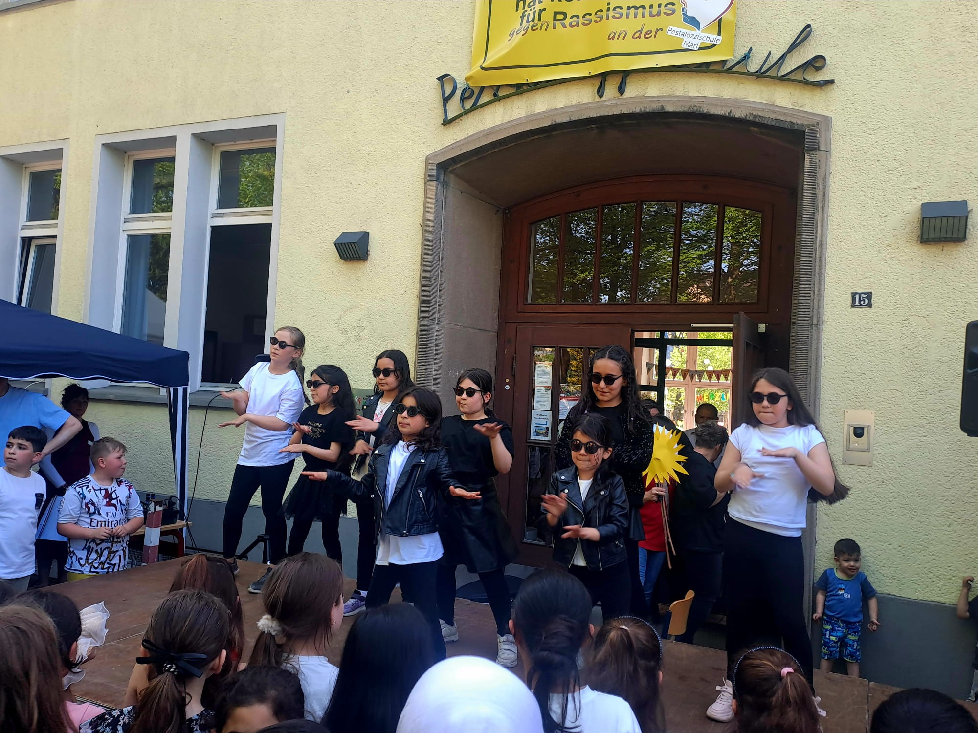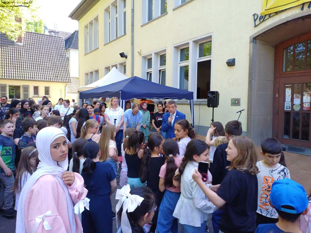 Los ging es mit einem bunten musikalischen Programm. „Wir heißen jeden hier willkommen“ tönte es zur Begrüßung aus den Kehlen der Pestalozzischülerinnen und -schüler. Kinder der AWO-Kita haben dann im Anschluss das Stück „Die kleine Raupe Nimmersatt“ aufgeführt und die Kinder der Klassen 1a und 1b haben das Lied von den ersten Blumen des Frühlings vorgetragen. Einige Kinder der OGS haben mit einem tollen Tanz die Zuschauer begeistert und gezeigt, was in ihnen steckt. Sogar der Bürgermeister war vor Ort und hat mitgefeiert.