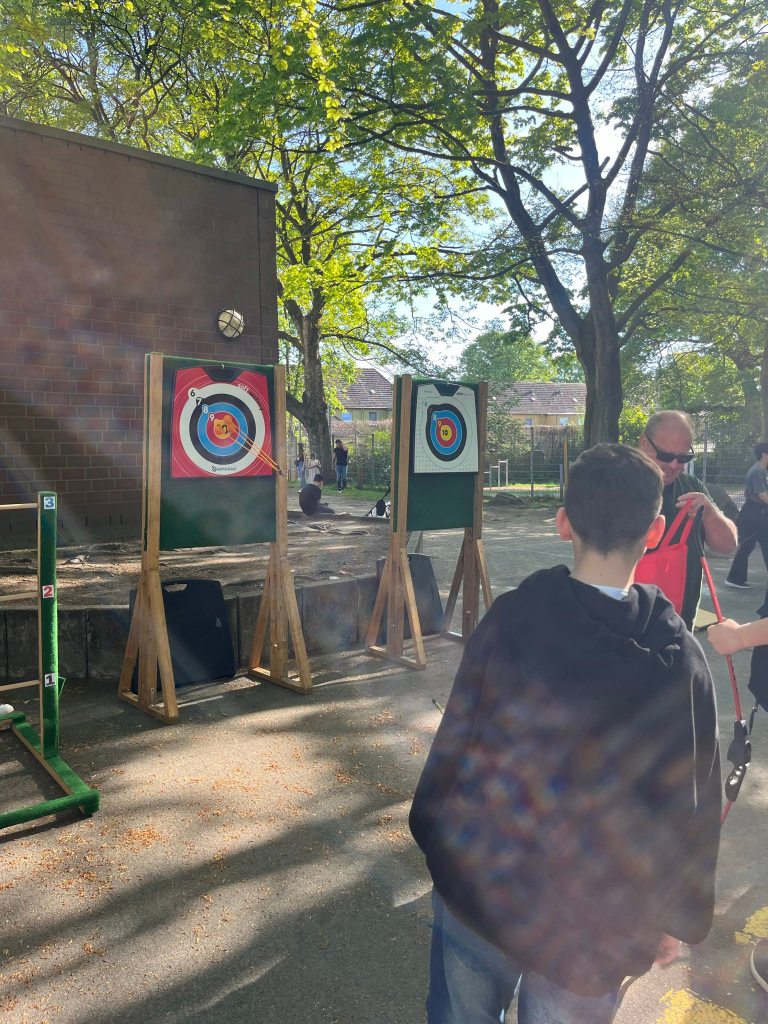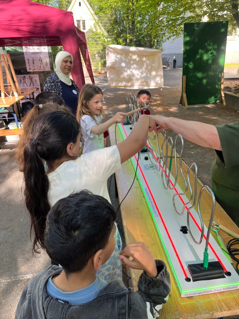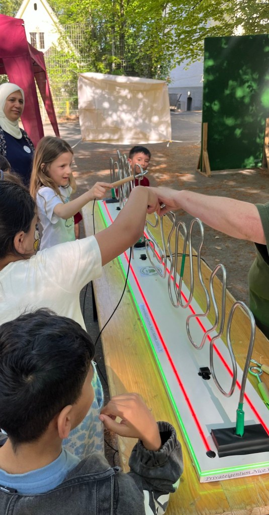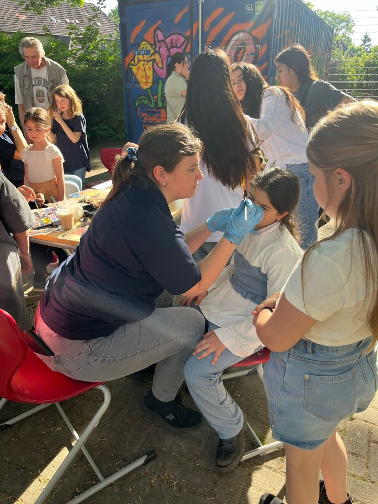 Außerdem gab es Getränke, Popcorn, Slusheis und natürlich Waffeln. Für jeden Geschmack war etwas dabei. Man konnte es sich vor der Schule unter den Sonnensegeln gemütlich machen und sich einfach unterhalten, wobei die AV-Kapelle die ein oder andere musikalische Untermalung beisteuerte oder sich auf dem Schulhof bei unzähligen Spielmöglichkeiten austoben. Hier gab es wirklich ein große Anzahl an Dingen zum Ausprobieren.